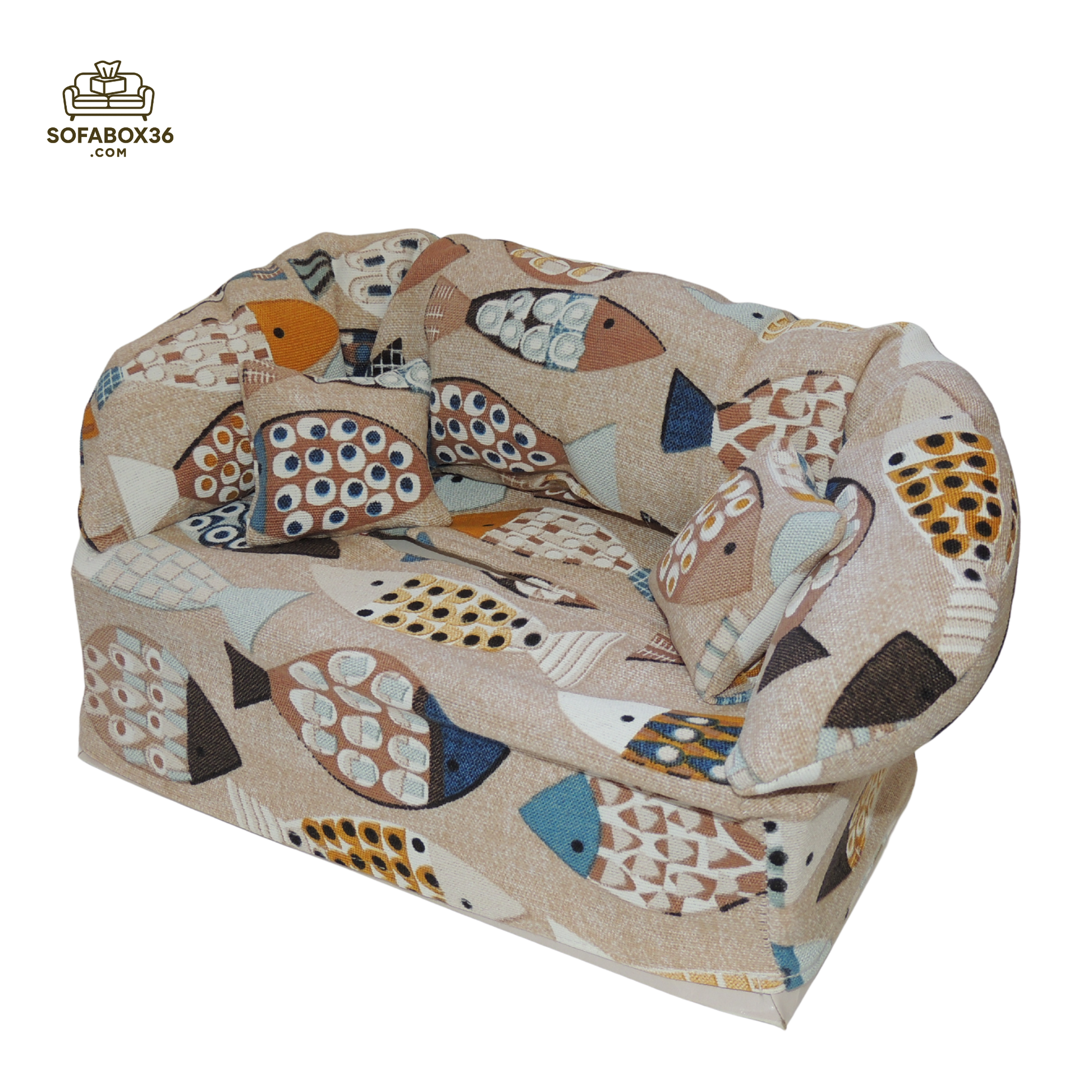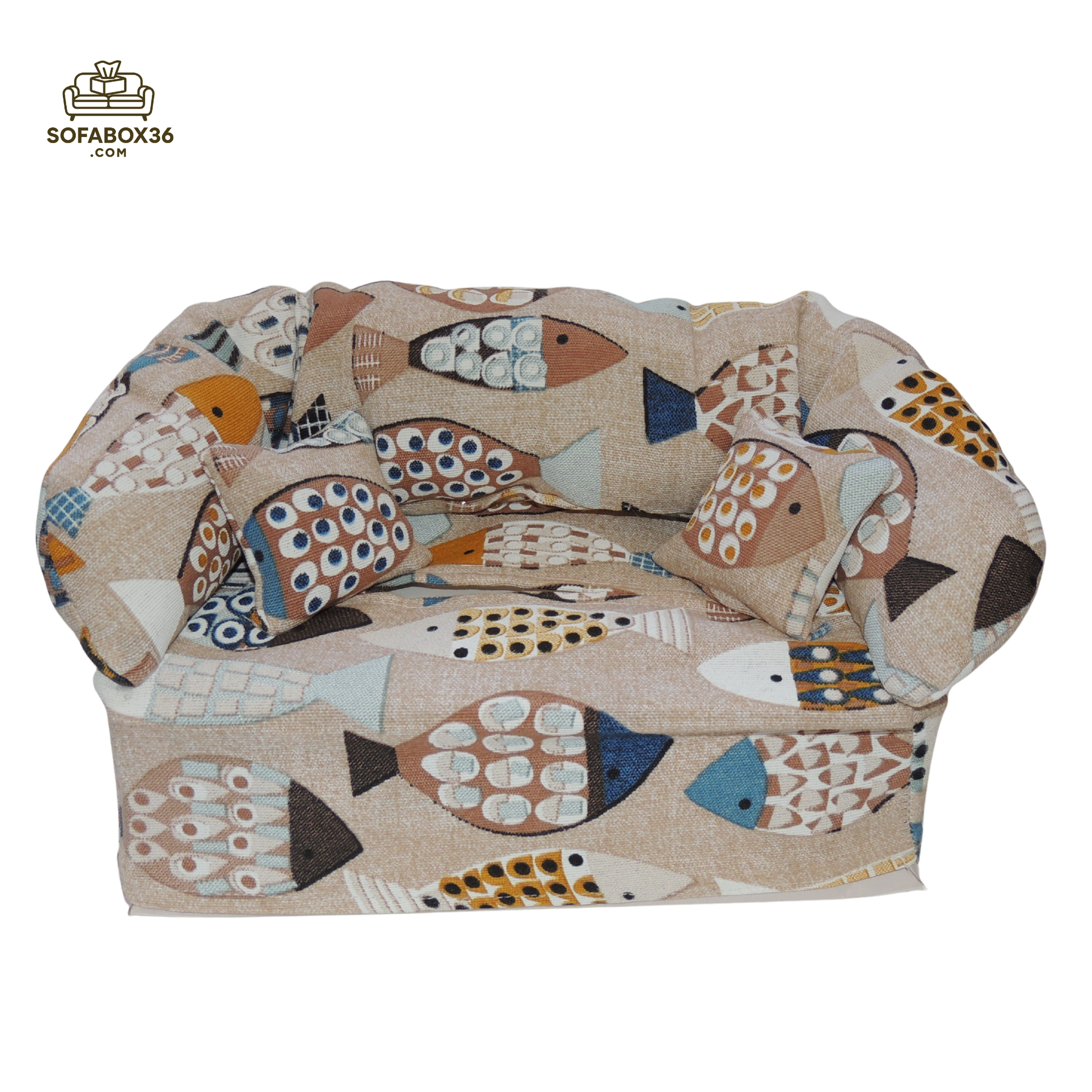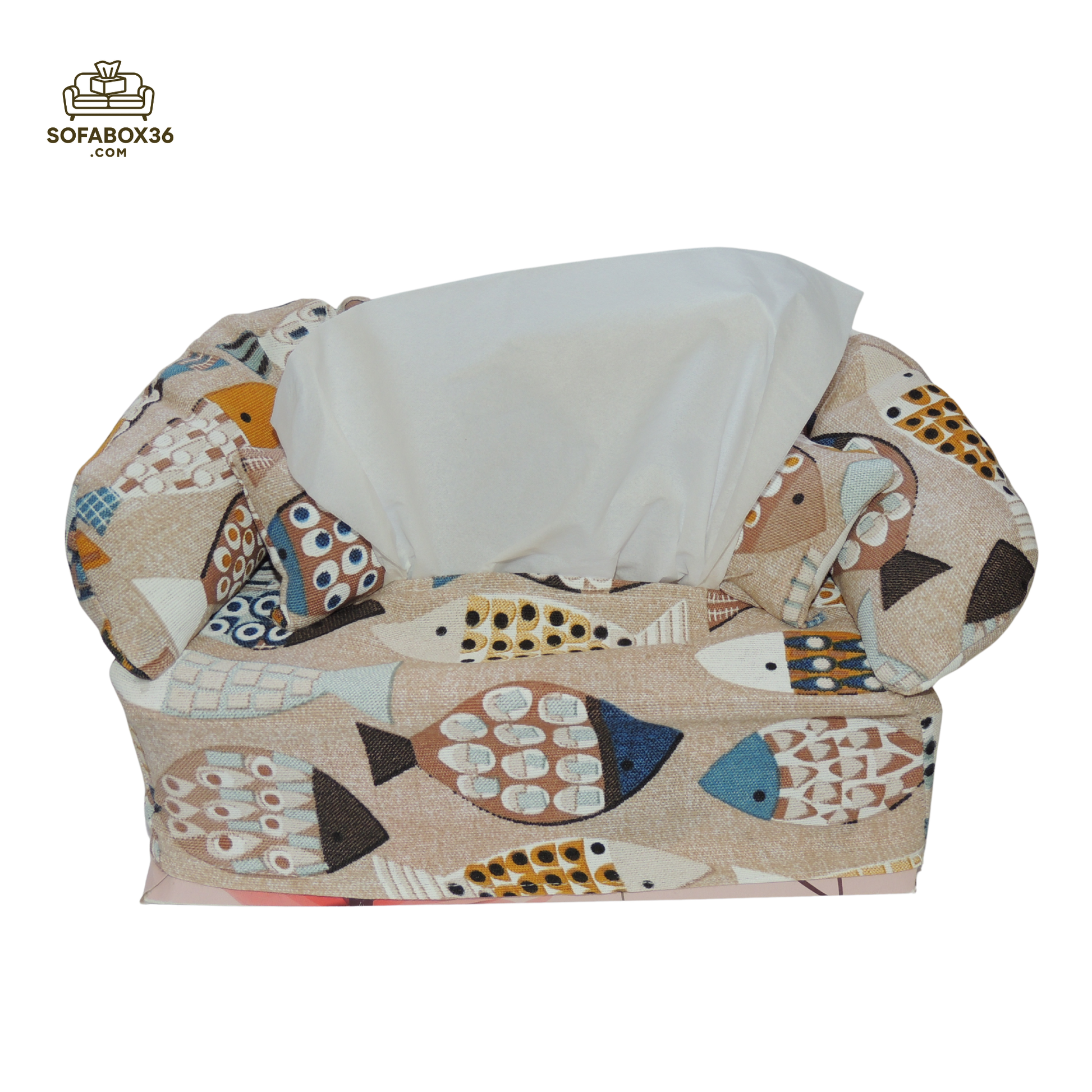 Taschentuchbox Überzug als Sofa dargestellt. Fische