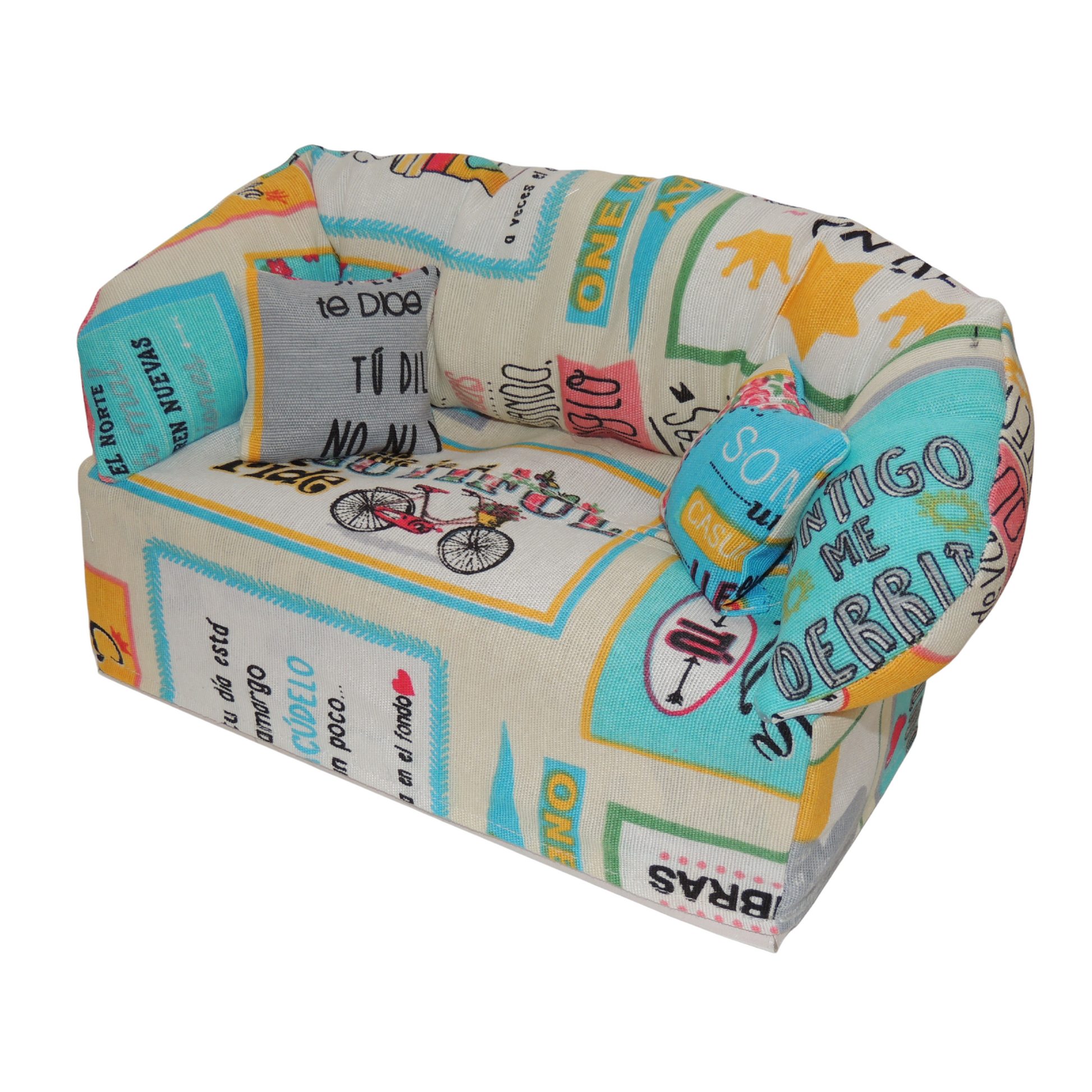 Taschentuchbox Überzug als Sofa dargestellt. Text