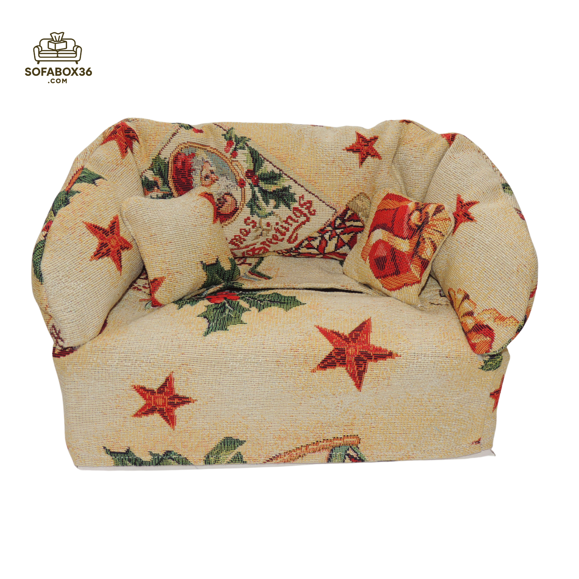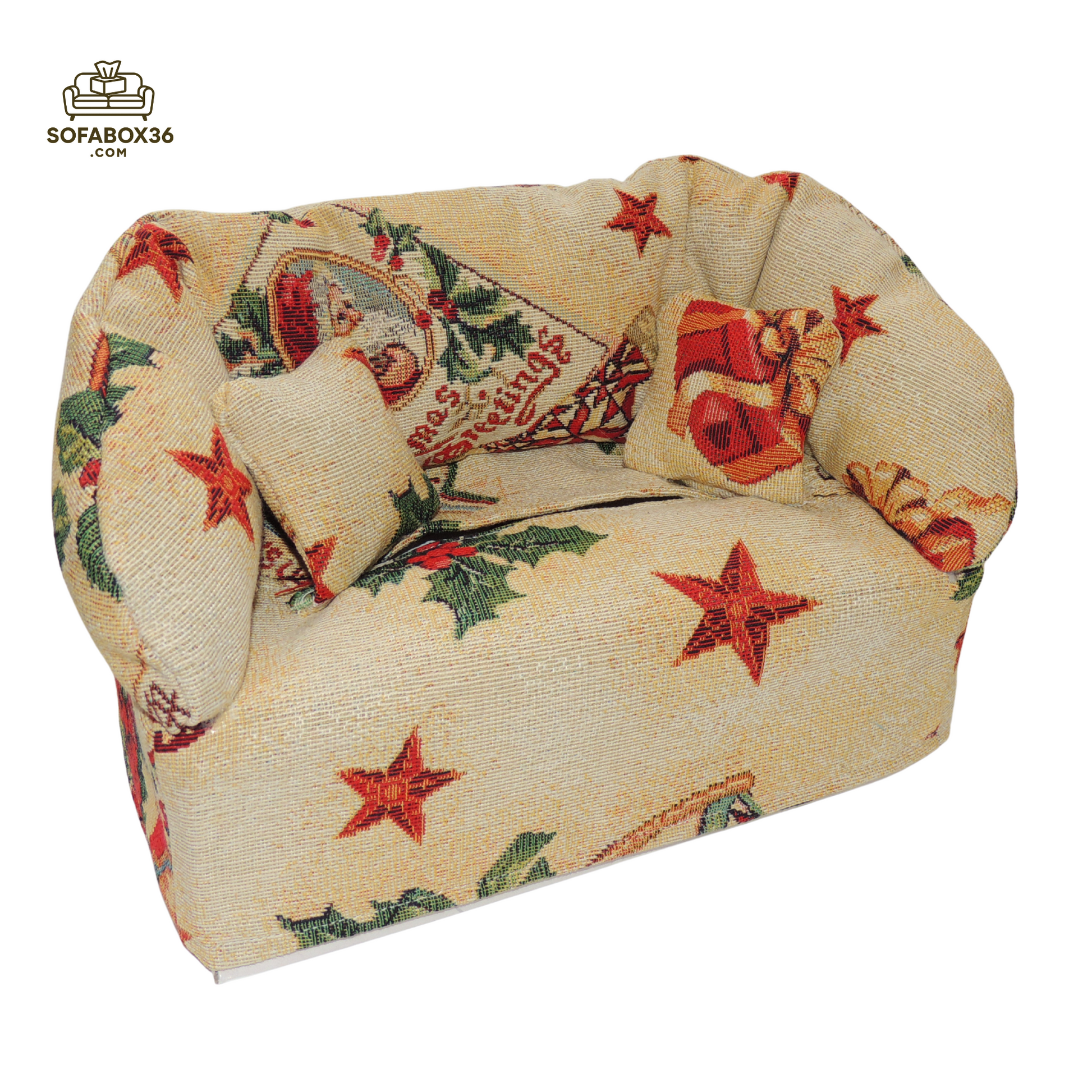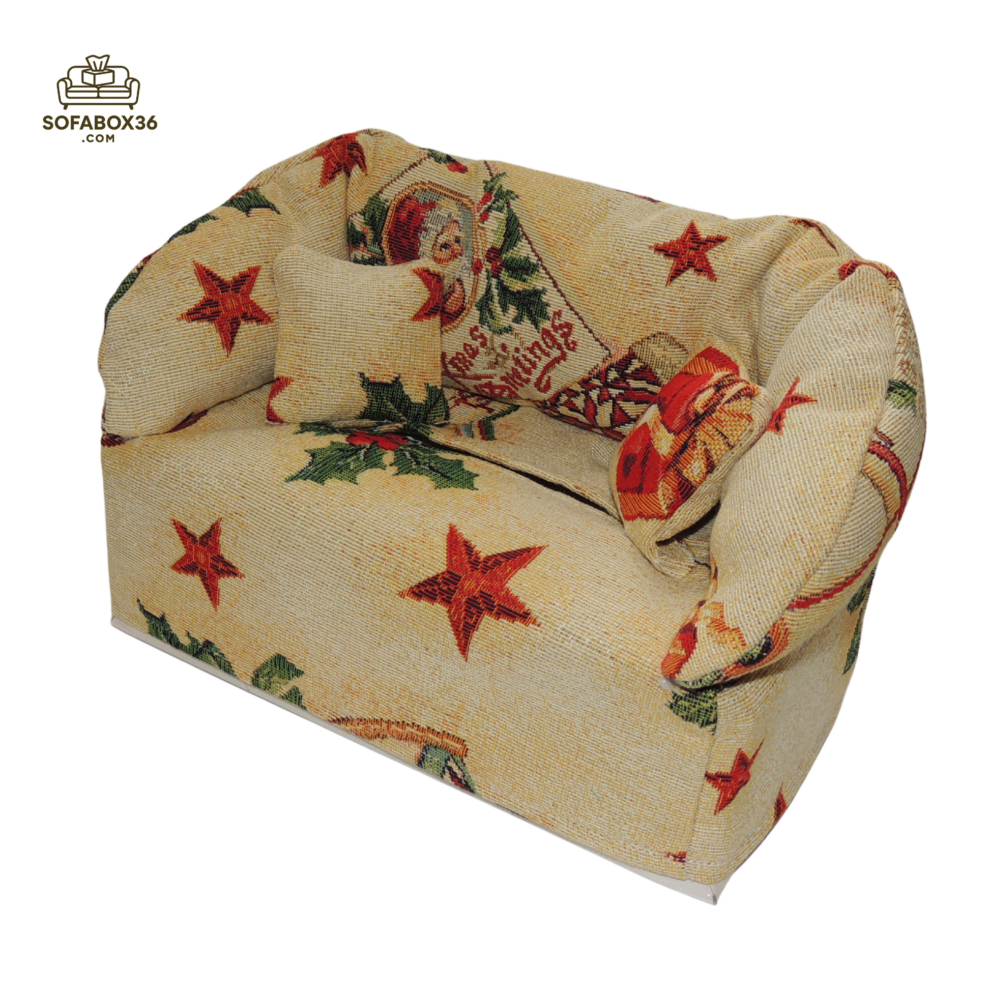 Taschentuchbox Überzug als Sofa dargestellt. Weihnachten